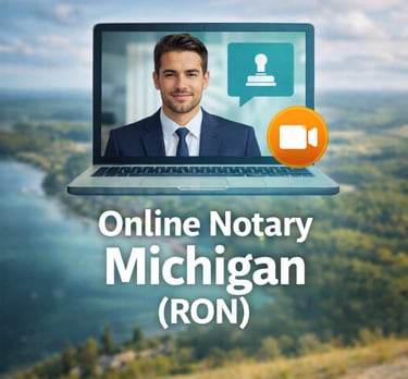 Michigan Remote Online Notarization (RON) Fully legal statewide. Notarize from your phone or computer, 24/7, no appointment or travel needed. Most sessions are completed in under 15 minutes — no printing, no driving, no waiting.